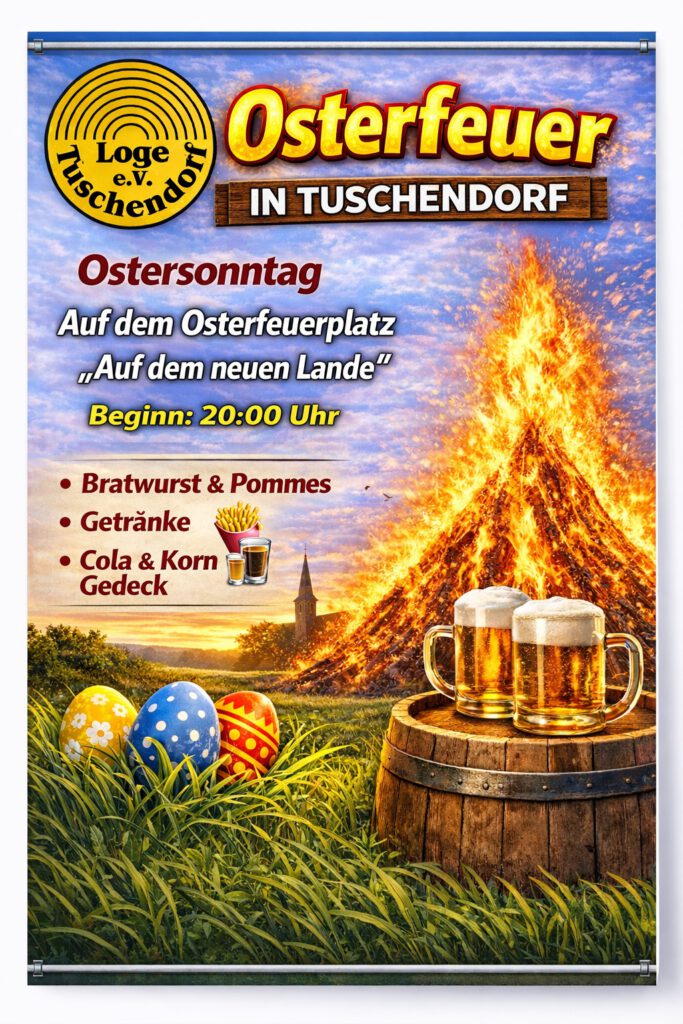 Am Ostersonntag werden wir wieder das Traditionelle Osterfeuer am Sandpott in Loge abhalten.
